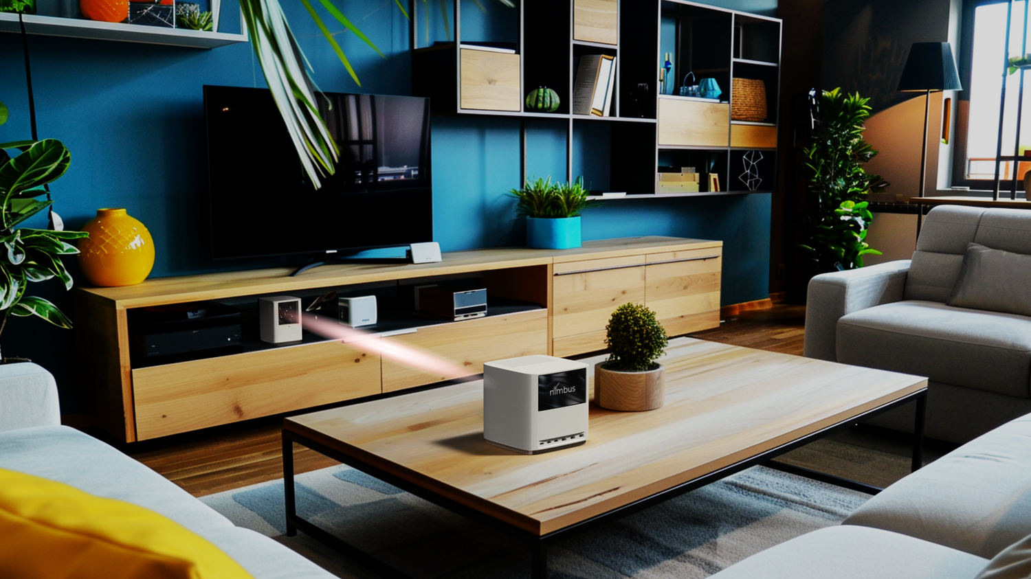 We use an invisible LED spotlight to transmit energy from TV stand to your coffee table. The receiver absorbs that light to produce electricity. Think of the receiver like a portable power outlet. Plug in your laptop or phone from the convenience of your couch.